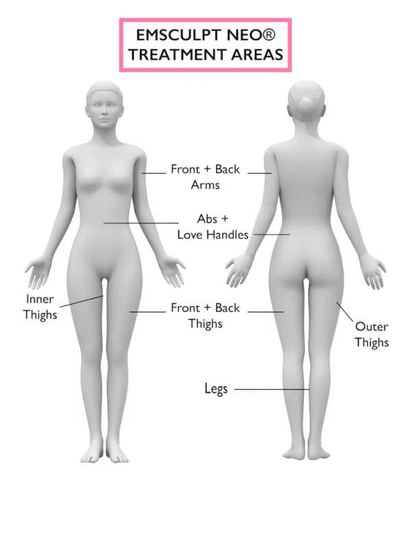 Emsculpt NEO is the most advanced body contouring technology on the market. It revolutionizes the treatment process by combining two powerful energies into a single, 30-minute session to build muscle and eliminate fat simultaneously. High-Intensity Focused Electromagnetic (HIFEM) Energy: This energy stimulates supramaximal muscle contractions—thousands of powerful contractions far more intense than what you can achieve in a workout. This process builds, strengthens, and tones muscle fibers.Radiofrequency (RF) Energy: The RF energy gently heats the treatment area, warming up the muscles to respond more effectively to the HIFEM contractions. This heat also raises the temperature in subcutaneous fat cells, permanently destroying them. The body then naturally processes and eliminates these dead fat cells over time.